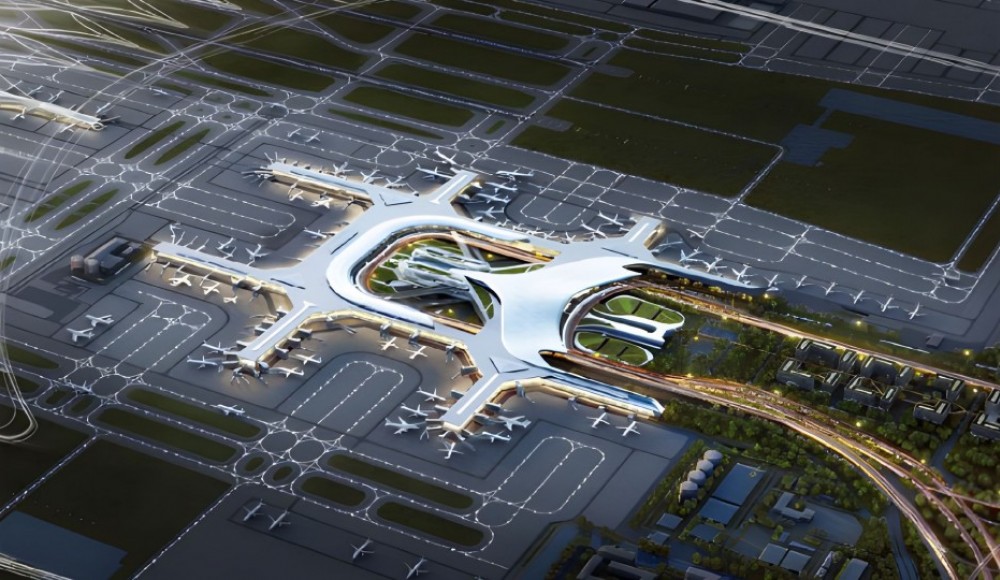 交通中心位于T1航站樓東側(cè),總面積約80萬平方米,自東向西。自上而下將機(jī)場航站樓、磁浮、高鐵、地鐵、長途車站、公交站、出租車上客點(diǎn)及社會(huì)停車庫等交通設(shè)施集約布局于一體。工程地下室抗拔樁采用機(jī)械連接竹節(jié)樁7萬米。